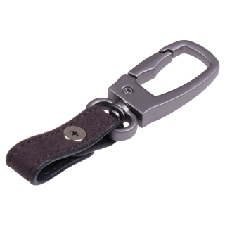 - Mosquetón metálico con llavero de piel genuina para fijación segura