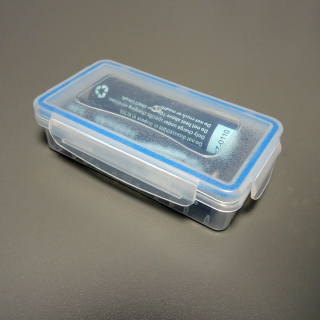 Pequeña caja con cierre hermético para poder almacenar dos baterías Li-Ion 18650 o similares.