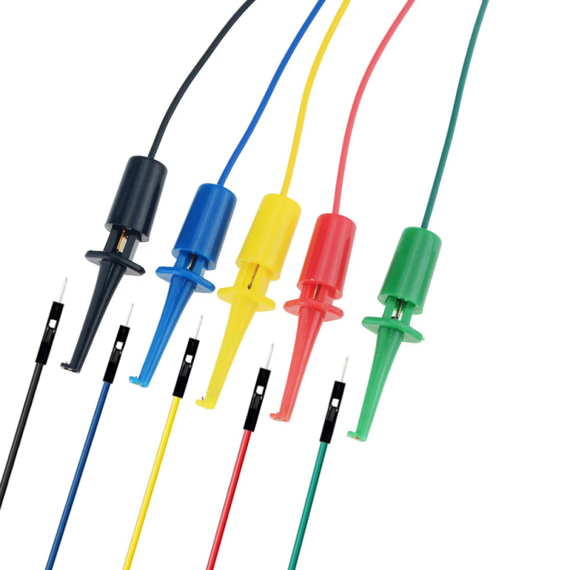 - Configuración: Conector Dupont en un extremo (hembra o macho según variante) + pinza test hook en el otro extremo
