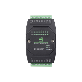 El Módulo Modbus RTU IO 8CH de Waveshare es una solución versátil para la expansión de entradas y salidas digitales en sistemas de automatización industrial. Este dispositivo permite controlar y monitorizar hasta 8 canales configurables independientemente como entrada o salida, facilitando la integración con sistemas SCADA, controladores PLC y dispositivos maestros que soporten el protocolo Modbus RTU estándar. Su interfaz RS485 garantiza comunicaciones fiables en entornos industriales con presencia de ruido eléctrico, alcanzando distancias de hasta 1.200 metros sin necesidad de repetidores.