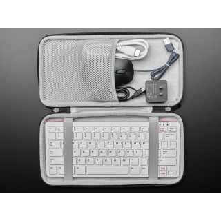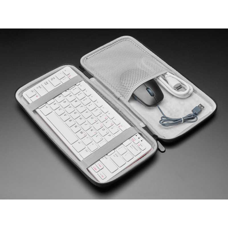 Nos sentimos muy satisfechos cuando las cosas encajan en otras cosas, así que nos hemos enamorado de esta funda con cremallera porque tiene el tamaño perfecto para una Raspberry Pi 400, Raspberry Pi 500 o Raspberry Pi 500+. Por supuesto, también puede adaptarse a otros teclados que no midan más de 310mm de largo y 150mm de ancho. Tiene una capa exterior rígida para proteger los delicados componentes electrónicos de los golpes, y un acolchado suave para mantener las piezas acogedoras en el interior.