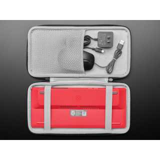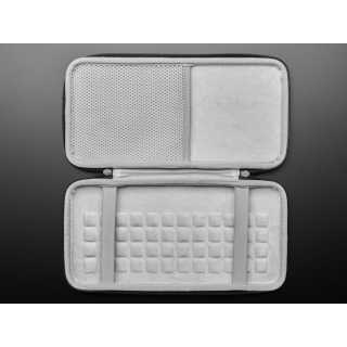Tiene incluso un asa de agarre y un bolsillo interior de malla que puedes utilizar para guardar accesorios como ratones, cables USB, pinzas de cocodrilo, cables de puente, baterías adicionales, etc. Ni demasiado grande ni demasiado pequeño, el tamaño perfecto para llevar y se puede meter fácilmente en una bolsa más grande, si es necesario. Viene en el clásico negro de Adafruit.