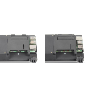 El diseño es muy compacto, y permite tener todo recogido, con los cables internos escondidos. Dispones de acceso total a los conectores de red, USB, HDMI y jack de audio. También puedes quitar la tapa del ventilador y poner otra tapa para tener acceso al conector GPIO. Si no usas ninguna tapa posterior, puedes incluso usar un HAT instalado en la Raspberry Pi.