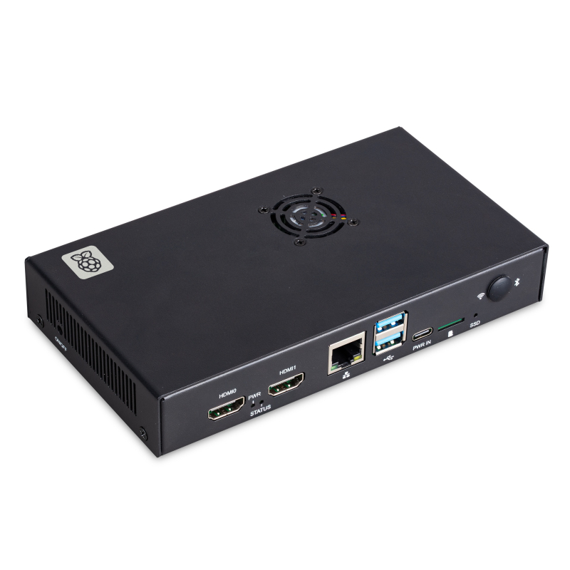 Diseñada pensando en la monitorización y el rendimiento, incorpora un ventilador controlable por PWM que garantiza una óptima regulación térmica, ideal para aplicaciones industriales, servidores edge o proyectos de inteligencia artificial donde la estabilidad y la temperatura son críticas. Su sistema de ranuras permite conectar cámaras CSI-2 o pantallas DSI de forma sencilla, facilitando la creación de sistemas de visión artificial, kioscos interactivos o estaciones de captura de datos. Los recortes laterales ofrecen acceso directo a HDMI, Ethernet, USB-A, USB-C (alimentación) y a la ranura para tarjetas SD, lo que agiliza la configuración y el mantenimiento.