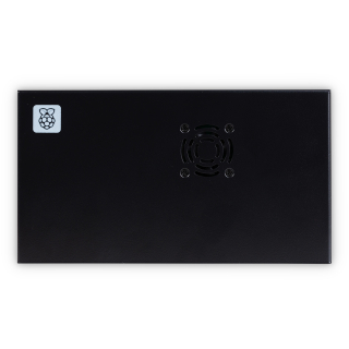 Carcasa metálica premium con ventilador para Raspberry Pi Compute Module 5 y IO Board. Protección, refrigeración y acceso total a puertos y accesorios.