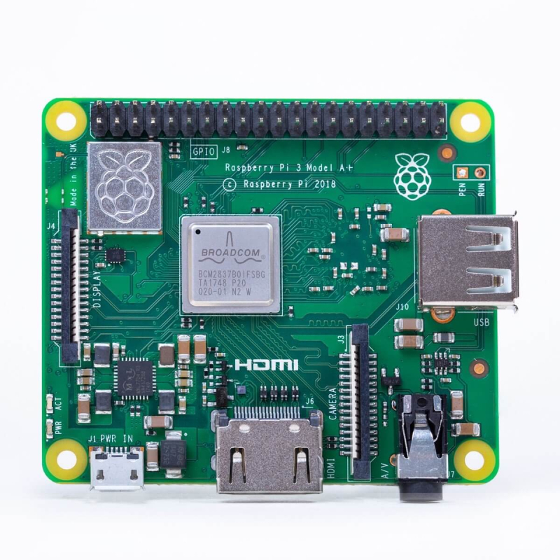 La Raspberry Pi 3 Modelo A+ contiene 512MB LPDDR2 SDRAM y un solo puerto USB, lo que permite reducir el tamaño, manteniendo la potencia y rendimiento del modelo B+.