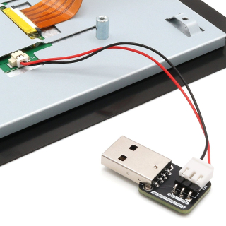 Simplemente enchufa el conector Touch Display 2 en los tres pines del módulo USB, conéctalo a cualquier puerto USB de tu Raspberry Pi, ¡y ya está! El módulo tiene un conector bajo que hace prácticamente imposible colocar el conector de la pantalla al revés, y también está etiquetado por si necesitas más seguridad.